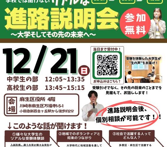 12月21日(日) 学校では聞けない「リアルな進路説明会」を開催します