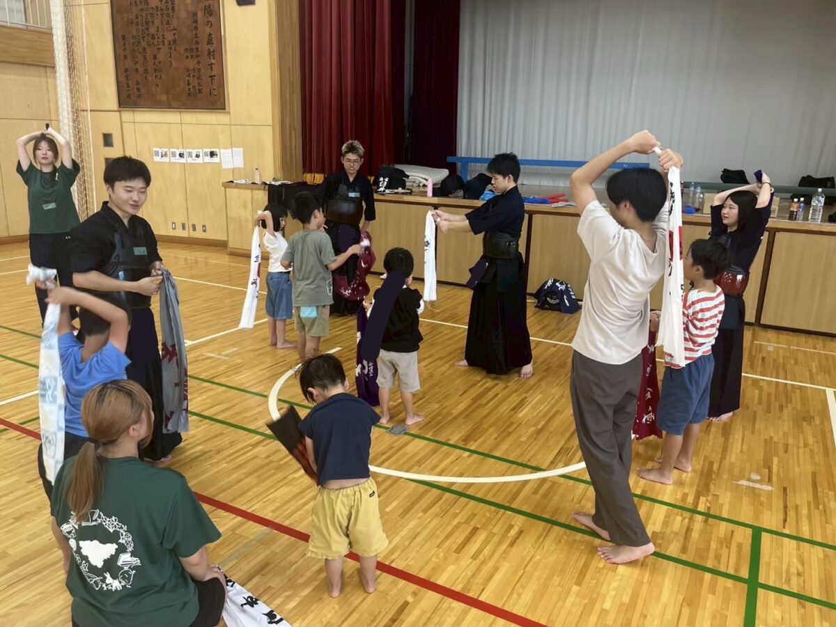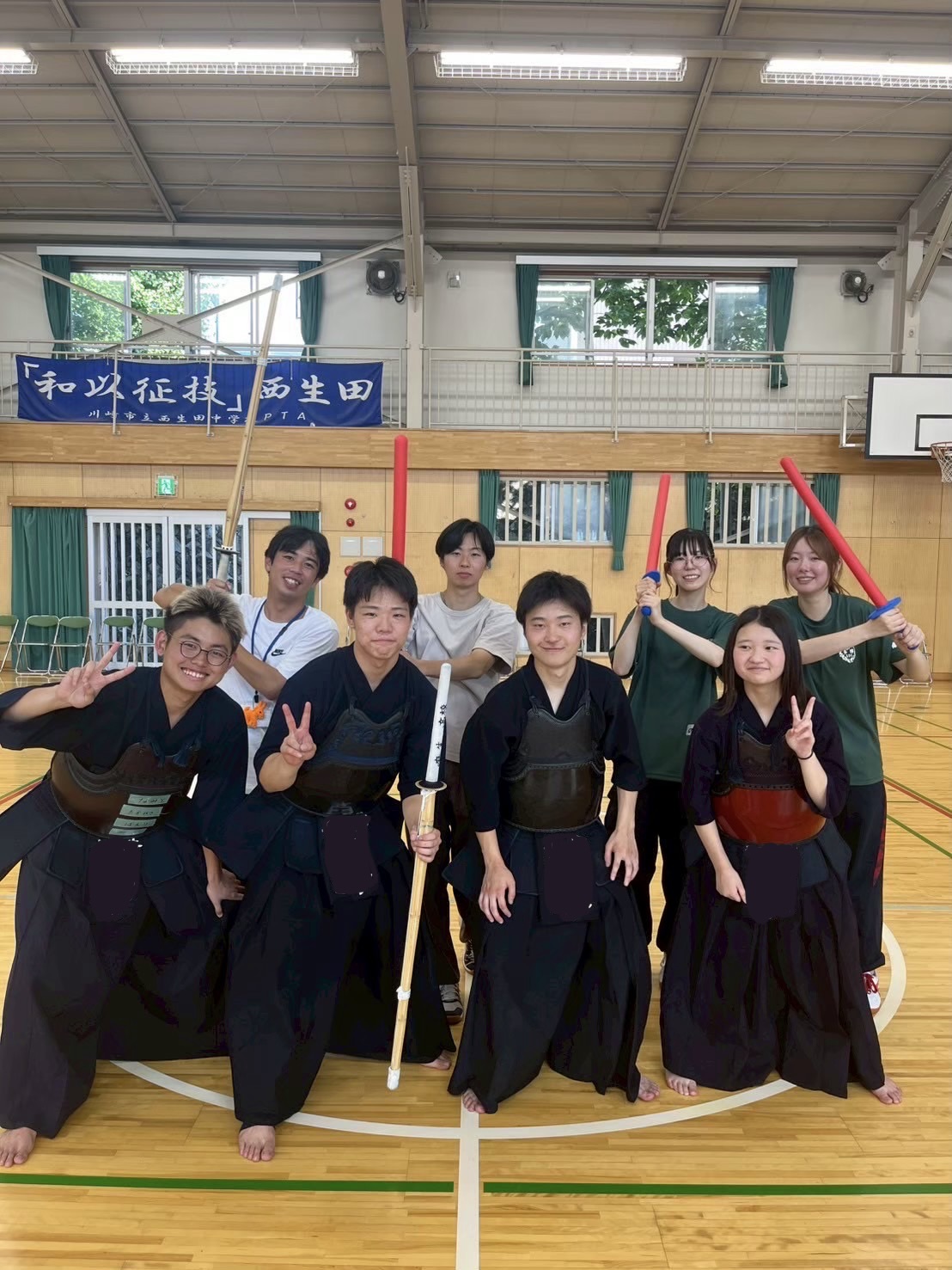 2025年8月30日剣道・バスケットボール講座を開催しました! 2025.10.06報告 8月30日(土)ドッジボール講座後に剣道・バスケットボール講座を西生田中でそれぞれ開催しました! この講座は高校生が主体となって企画・準備した講座になります! 剣道講座 剣道講座では、安全を考慮し本物の竹刀ではなくチャンバラを用いて剣道の基礎から教えました。 参加した子どもたちの中には剣道に初めて触れる子もいて、胴着姿の高校生と本物の竹刀に興味津々でした。集中して熱心に剣を振り、とても楽しい講座になりました。 バスケットボール講座 バスケットボール講座ではバスケットボールの基礎であるドリブルを中心に教えました。 楽しくドリブルが上達するように、ゲーム形式で行うなどの工夫を行いました。 講座を終えた子どもたちは汗をかいて清々しい姿でした。 報告コメント: 0