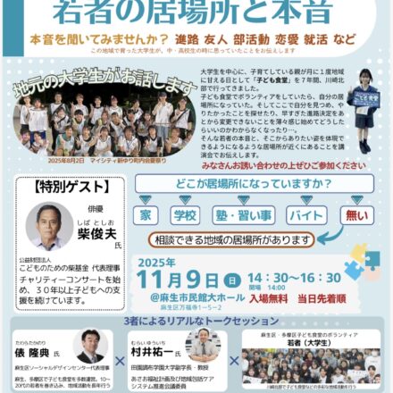 11月9日(日)「若者の居場所と本音」講演会を開催します!